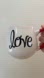 Pier 1 Imports mug. Hand painted off white stoneware with a red interior. Spell out "Love" on one side in black.