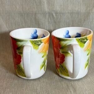PIER 1 IMPORTS Set of 2 Mugs Floral Tiny Chips on One Mug 12 oz.