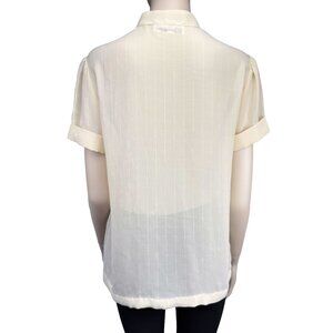 PIERRE BALMAIN VTG Semi - Sheer Mandarin Collar Butter Cream Yellow Button Down Blouse 12 / Medium