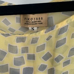 PIKO 1988 | Yellow Sleeveless Sheer Blouse with Gray Pattern Size S