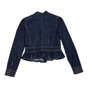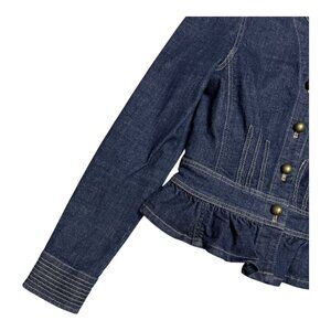 Designed to fit a women's small, this basic jacket features a button closure, convenient pockets, and a lightweight fabric that makes it an ideal choice for all seasons. Whether headed to the office, out for a casual meet-up, or attending a cocktail party, this denim jacket from Anthropologie provides a touch of effortless style.