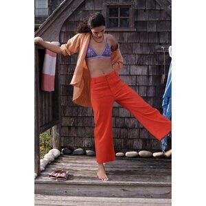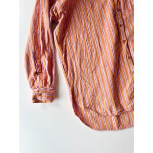 PILCRO Oxford Tunic Orange Pink Striped Cotton Linen Button Down Shirt, Size XS