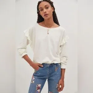 Excellent condition size small Anthropologie pilcro ruffle open back top in white. No notable flaws, in great gently used condition!