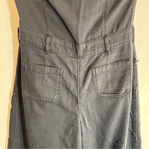 PILCRO Sz 8 The Skipper Jumpsuit Washed Out Black Smocked Back Wide Leg Strapless NWOT Anthrpologie. Step out in style with this elegant navy jumpsuit. Perfect for any occasion, it offers a sleek casual look that you can dress up or down.