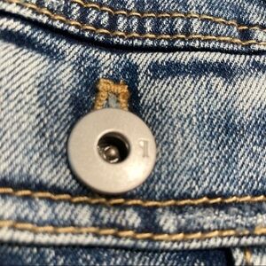 Anthropologie PILCRO & THE LETTERPRESS Sz S Denim Trucker Jacket with Gingham Embroidered Hem. Anthropologie. NWOT