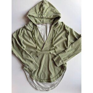 PILCRO Wharfside Green Striped Cotton Terry V-Neck Hooded Sweatshirt, Size S
