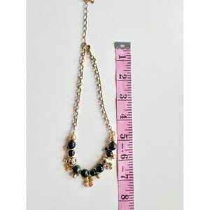 PILGRIM Gold 4 Leaf Clover Black Beaded Rhinestone Crystal Charm Chain Necklace