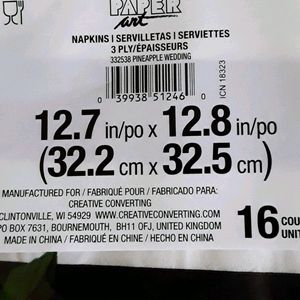 NWT, UNOPEN Paper Art gold pineapple napkins. 16 count of 3-ply 12.7" x 12.8"