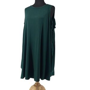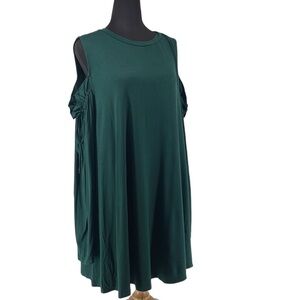 PINK Blush Maternity Dress emerald green cold shoulder long sleeve stretch flowy