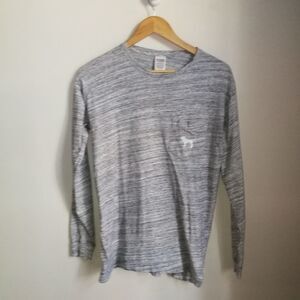 PINK Grey & White Dog Sequins Cotton Long Sleeves Sweatshirt Size XS
