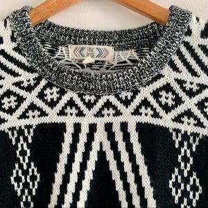 PINK ROSE Knit 🧶 Crew Neck Cozy Black White Stretch Boho Mini Dress