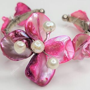 PINK Sea Shell With Simulated Pearl Beads Cuff Bracelet - Adjustable