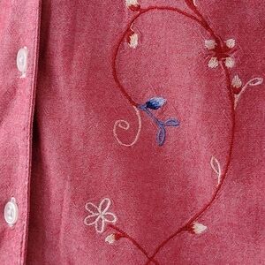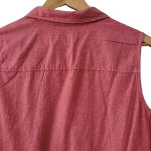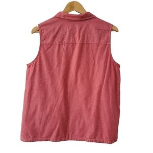 PINK Sleeveless Blouse Cotton Button Up Embroidered Collared Tank LG