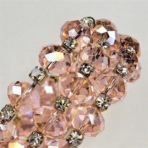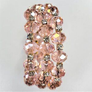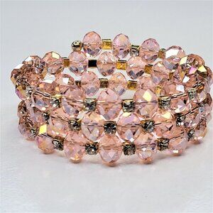 Wrap Around Sparkling Light Pink Crystals on a multi faceted Glass Bead Coil Bracelet
