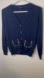 PINK TARTAN Bejeweled Cardigan Sweater Navy Blue V-neck Rhinestone Flowers Small