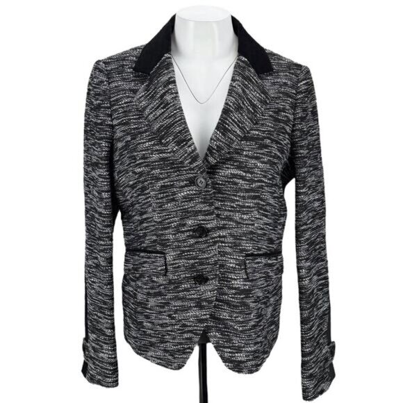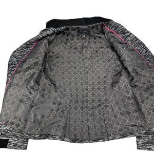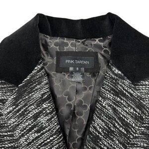 PINK TARTAN Wool Blend Black Velvet Trim 3 Button Blazer Jacket Sz 8 White Black