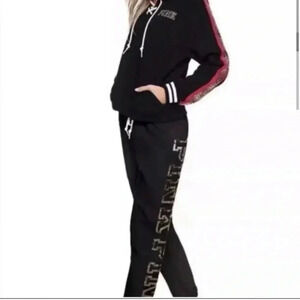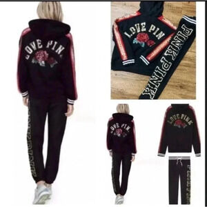 PINK VS 2017 FASHION SHOW BLING ROSES HOODIE AND JOGGERS SET L