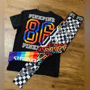 PINK VS FASHION SHOW TSHIRT/ ULTIMATE RAINBOW LEGGINGS OUTFIT S