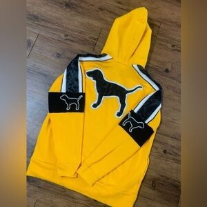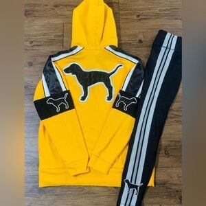 PINK VS SHERPA DOG YELLOW HOODIE AND COZY LEGGINGS OUTFIT M