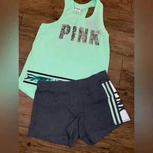 PINK VS TROPICAL BLING TANK / SHORTS OUTFIT SET XS/M