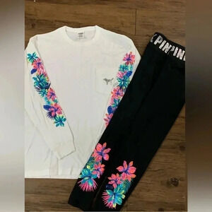 PINK VS TROPICAL BLING TSHIRT / YOGA LEGGINGS OUTFIT SET M