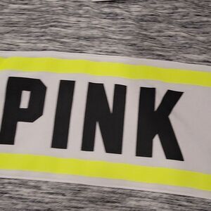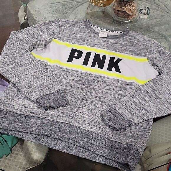 PINK Victoria Secret Gray and Neon Yellow Crewneck Sweat Shirt