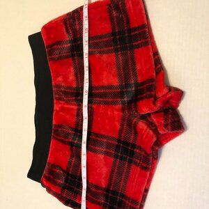🩳 PINK Victoria's Secret Fleece Red & Black Checkered Shorts – Extra Size Small