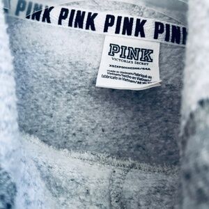 PINK Victoria’s Secret GRAY & WHITE HOODED CROPPED SWEATSHIRT Size XS