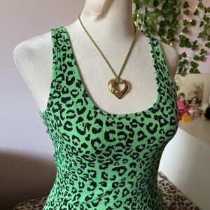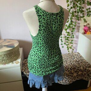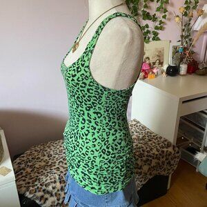 Stylish green tank top with bold leopard print. Perfect for casual wear.