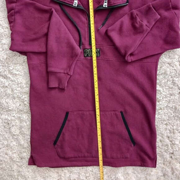 PINK Victoria's Secret Long Sleeve Sweater Collar 1/4 Zip Burgandy Pouch Size XS