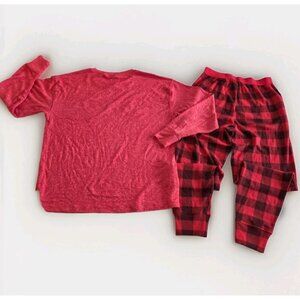 PINK Victorias Secret Pajama Set Women S Heathered Red LS Top Plaid Pants Lounge
