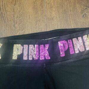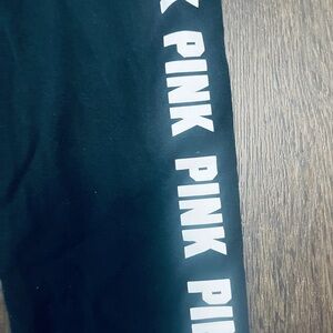 Trendy leggings with bold PINK branding. Comfortable and stylish for any occasion.