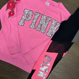 PINK Victoria's Secret Roses bling sweatshirt/ Mesh neon leggings Outfit S