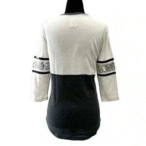 PINK Victoria’s Secret Sequin Top 3/4 Sleeve Baseball Tee White Black Size XS