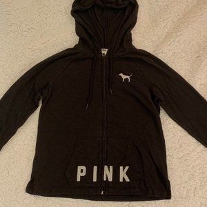 PINK zip hooded black sweater. No rips, holes or tears. Used but perfect condition.