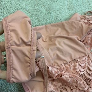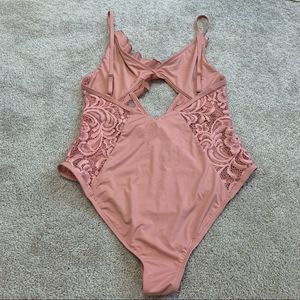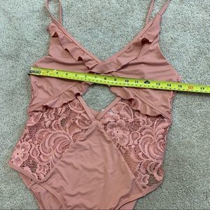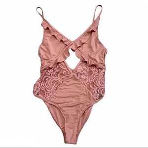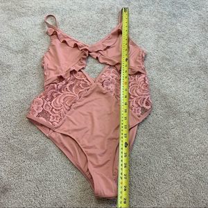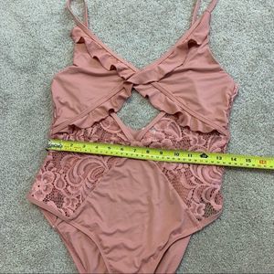 PINK dusty rose ruffle V-neck one piece swimsuit