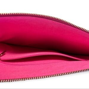 Brand new pink leather envelope. Could be used as a clutch or as an iPad case. Stylish and lined inside with an interior pocket. Beautiful gold hardware and quality stitching.