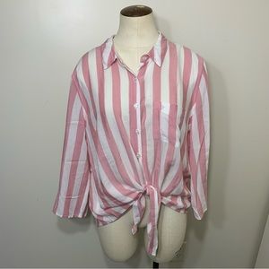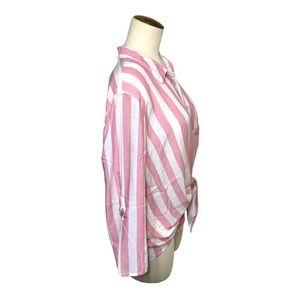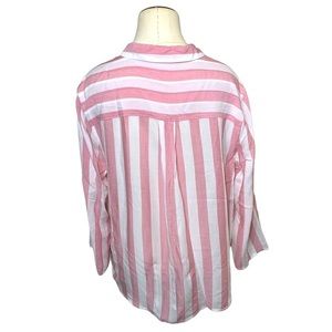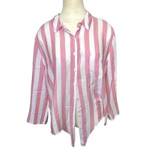 PINK rose flowy pink white blouse button down barbie core relax fit top sz large