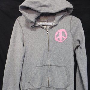 PINK, small, grey zip front sweatshirt hoodie Hope and Peace