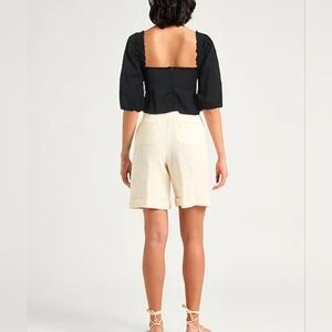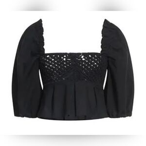 PINKO CROP Black Peplum Top Puffed Sleeve Darts Woven Square Size 2 170/80A