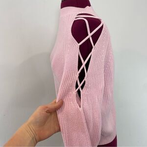 PINKO WAFFLE KNIT JUMPER IN PINK ONe Shoulder Lace UP