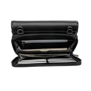 • The detachable wallet portion includes size card slots, zip compartment, phone compartment, bill slot