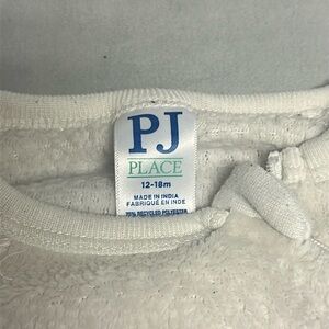 This charming one piece from PJ Place features a delightful cat face design with a pink nose and black whiskers, set against a soft white and pink color scheme. Made from a warm, fuzzy material, it ensures comfort and coziness with its long sleeves and built-in footies. Perfect for keeping snug, it offers easy dressing with a convenient closure.