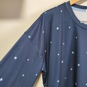 P.J. SALVAGE Pajama Set Top & Bottoms Stretch LS Wide Leg Navy Stars Women's XL