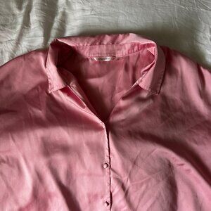 PJ SET - La Vie en Rose Satin Crop Button-Down Shirt and Satin Shorts Candy Pink
