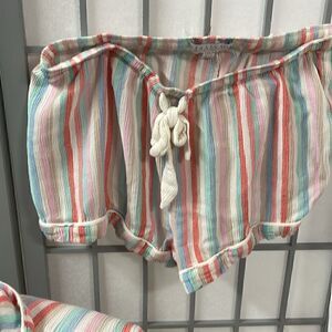 PJ set is buttery soft. Shortsleeve button-up shirt & shorts with tie waist.