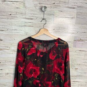 PJK Patterson J Kincaid blouse top red black floral size XS