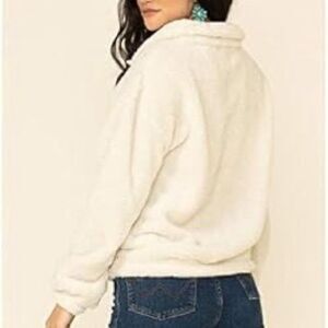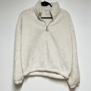 * Relaxed fit poly plush long sleeve top with mock neck.