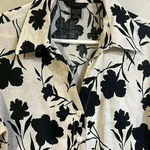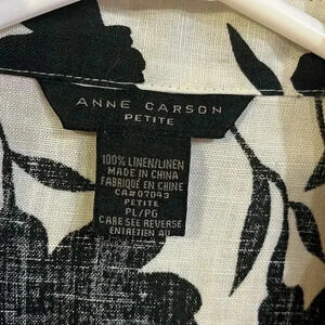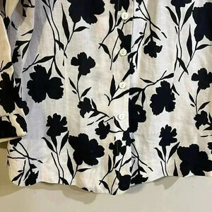 [PL] Anne Carson Petite Linen Black Floral L/S Button Down Shirt