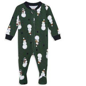 Allover snowman-print set creates a fun lounge and sleep look for baby